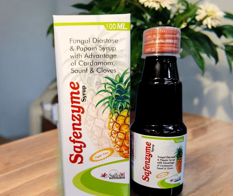 Composition: Fungal Diastase15mg.+ Papain25mg. + Cinnamon Oil 125mcg.+ Caraway Oil 250mcg + Cardamom Oil 250mcg.+ Lysine 20mg. Syrup
